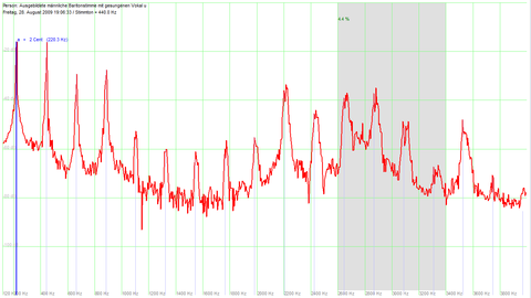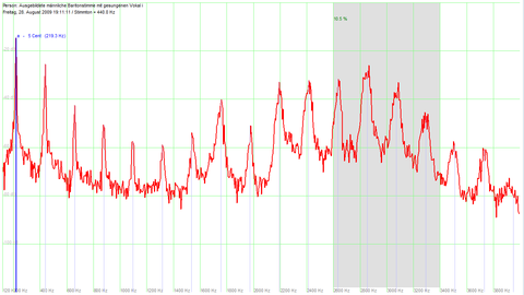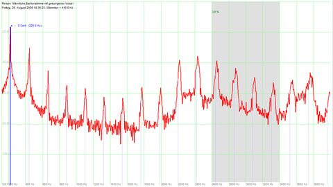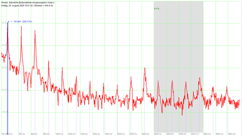 Die folgenden Abbildungen zeigen das Spektrum eines von einem Bariton gesungenen Tons (Tonhöhe ca. 220Hz)