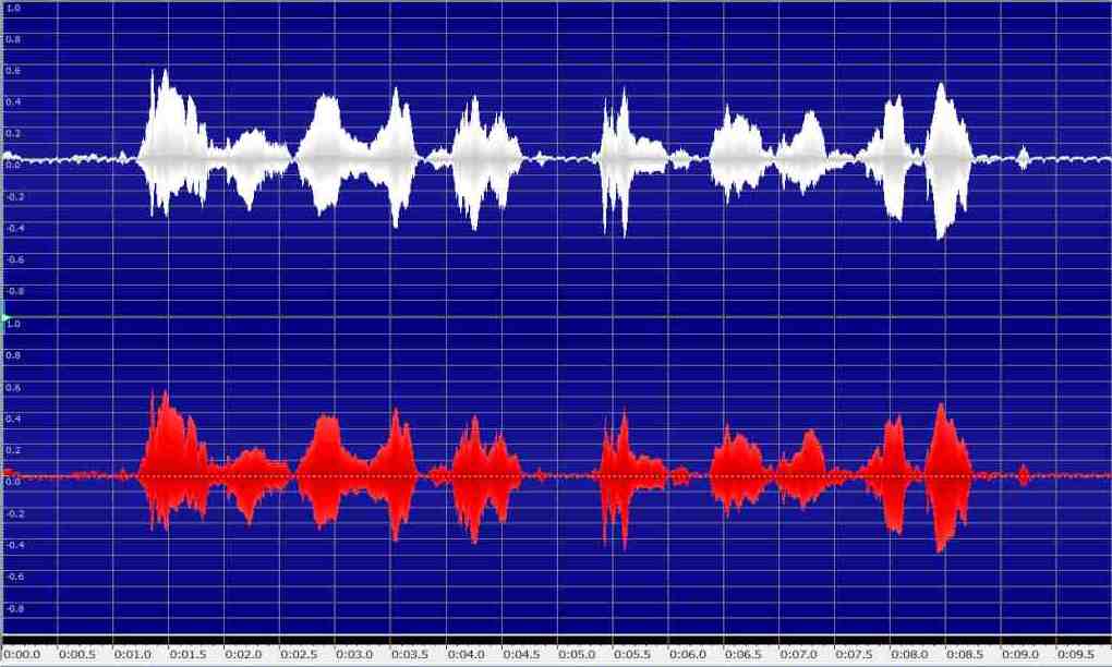 Man beachte die Unterschiede in den Spektren im Bereich um 3000Hz.