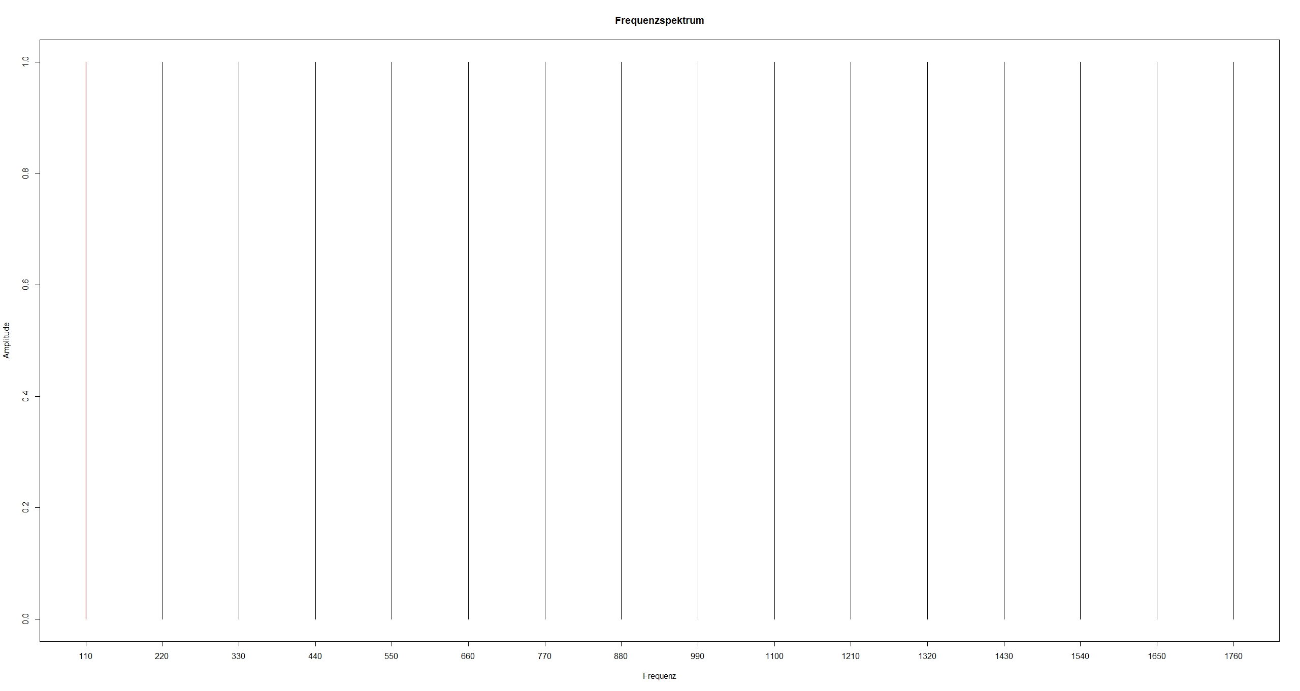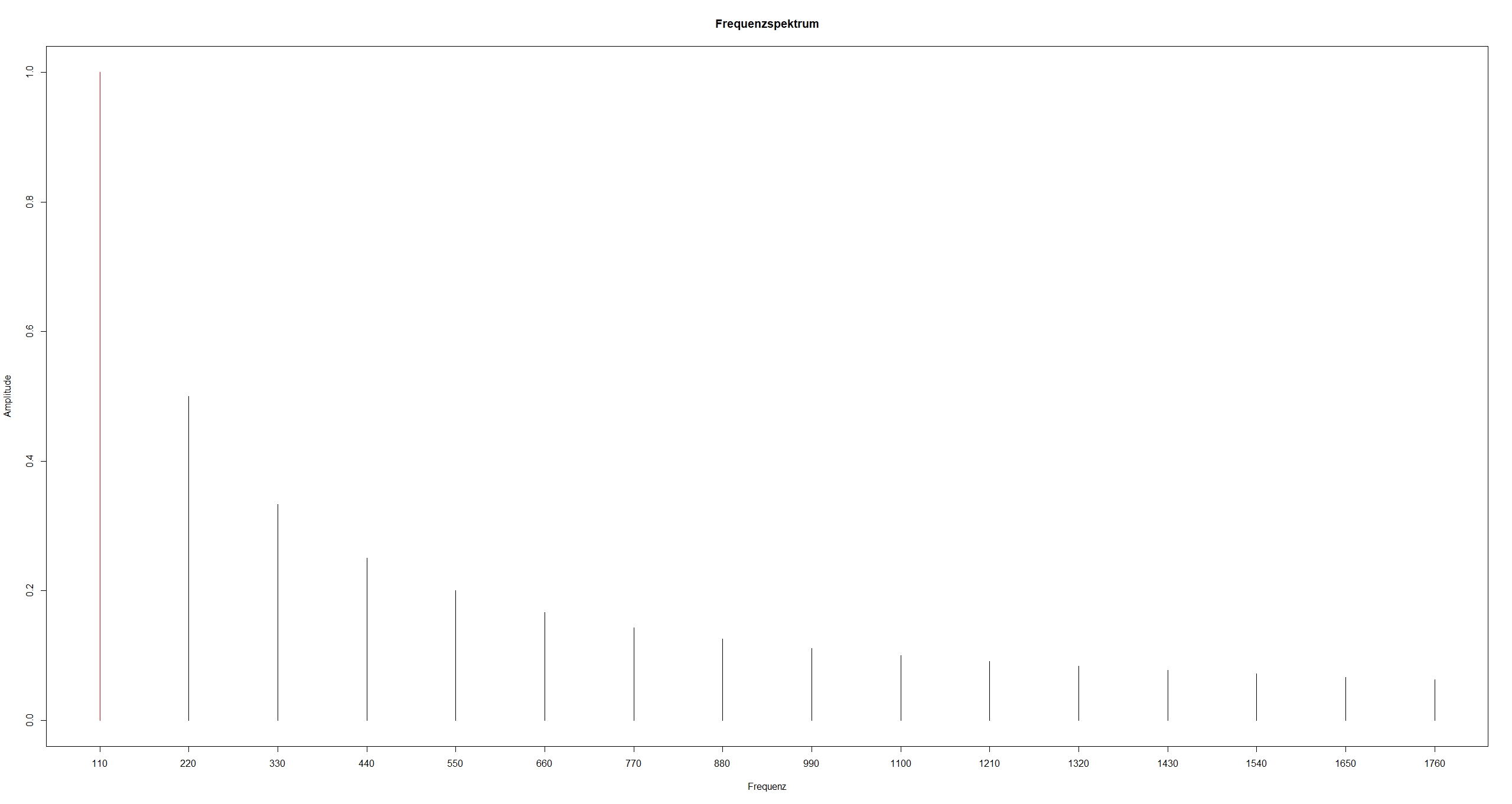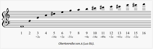 Das folgende Bild zeigt die Obertonreihe des großen A (110 Hz) bis zum 15. Oberton: