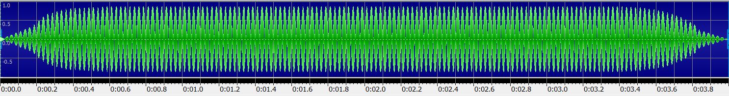Ein Sinuston von 500 Hz wird von einem zweiten Sinuston überlagert, der den Frequenzbereich von 500 bis 700 Hz durchfährt: